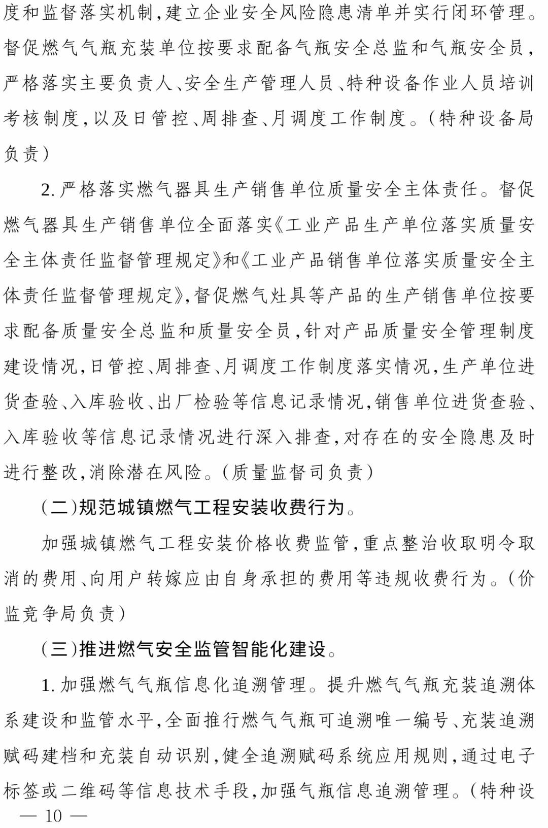 近日,市场监管总局发布关于印发《市场监管系统城镇燃气安全专项整治行动实施方案》的通知。