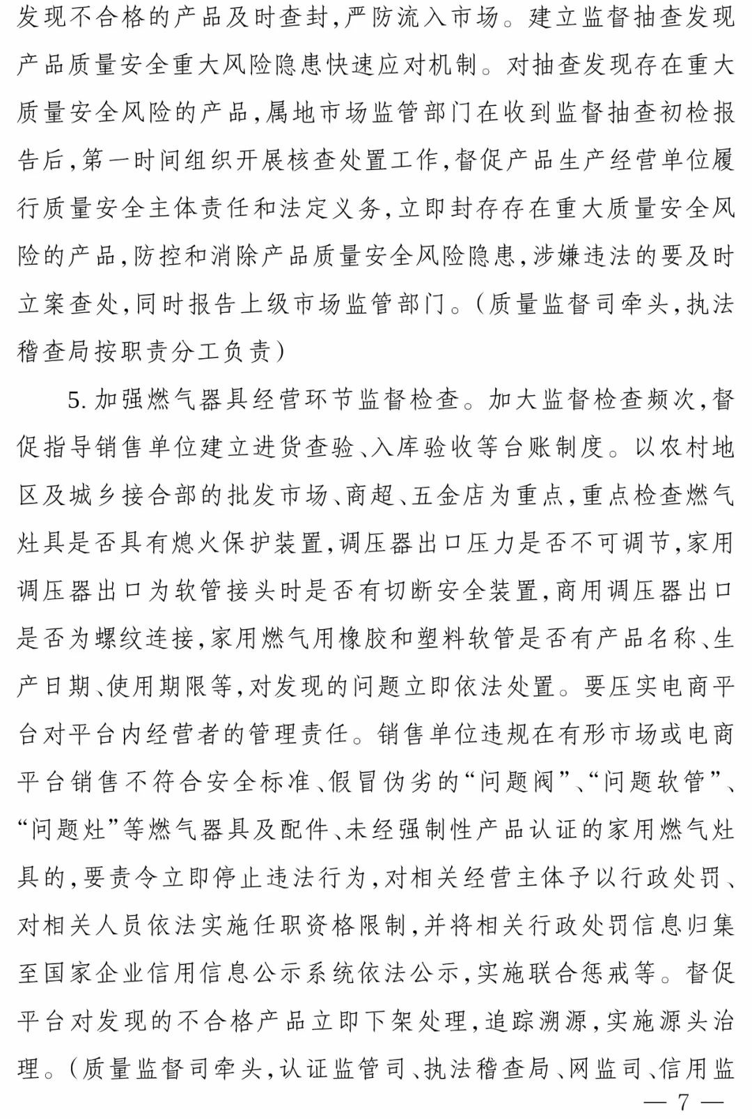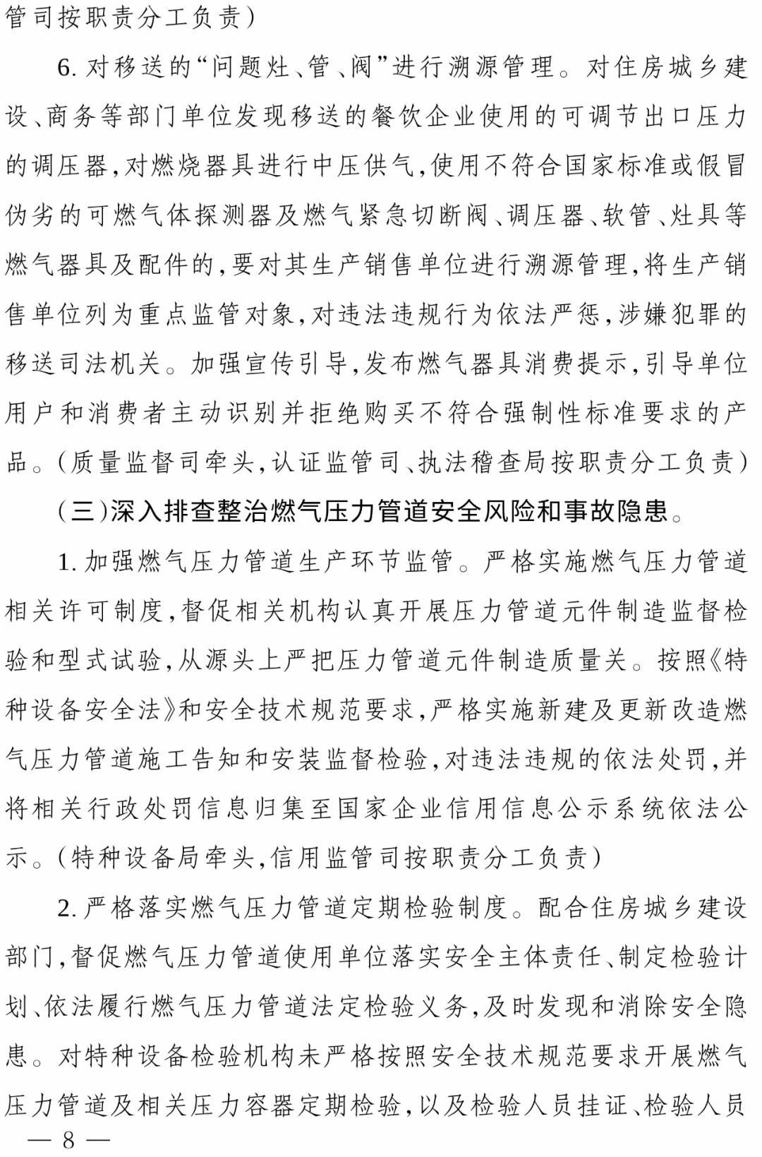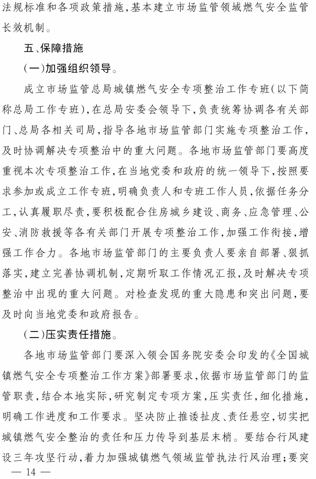 市场监管总局关于印发《市场监管系统城镇燃气安全专项整治行动实施方案》的通知